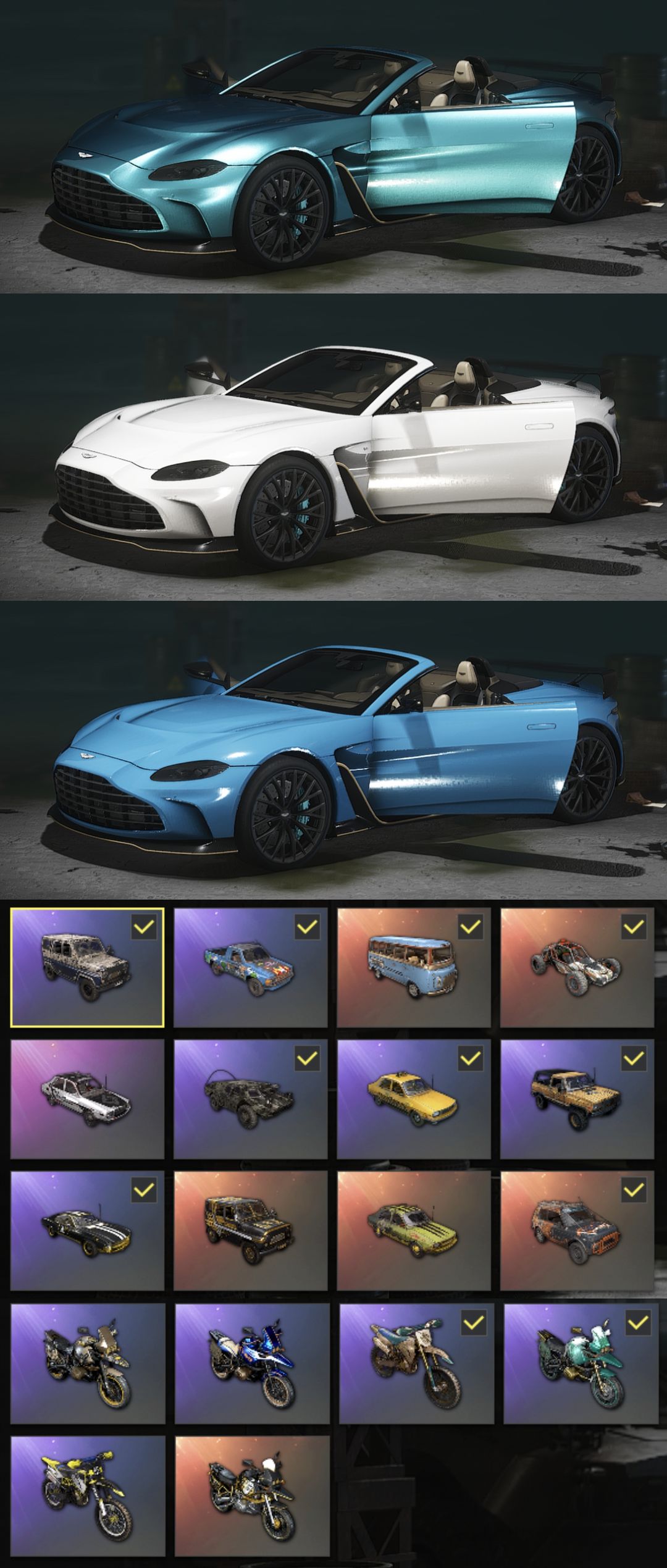 【九神器】三阿斯顿马丁跑车/满级圣诞老人小助手AKM/三级异色妖魔之触ACE32/三级朱雀M416/