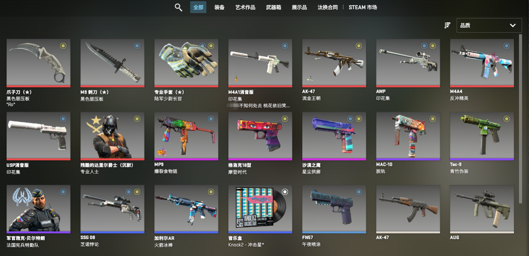 5E授信 绿色完美1650分❤爪子刀 M9刺刀❤流金王朝AK❤星尘拱廊沙鹰❤陆军少尉❤印花集套