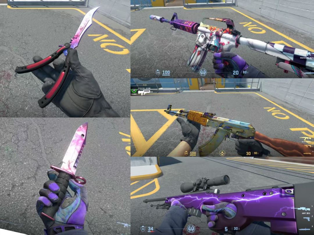 完美5E⭐潘多拉手套⭐多普勒蝴蝶刀+粉宝石M9刺刀⭐雷击AWP⭐表面淬火AK⭐蒸汽波A1⭐新款沙鹰
