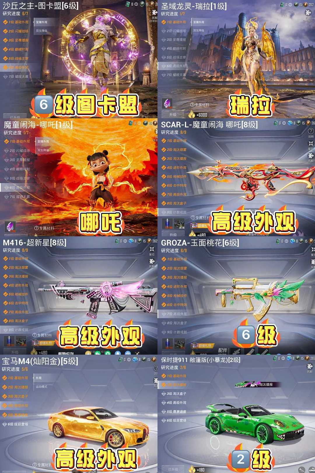 满天赋满素材/6级图卡盟哪吒龙妈/9把9级枪超新星魔童闹海万古/5级宝马保时捷/雪国都市赤蝎小金鞋